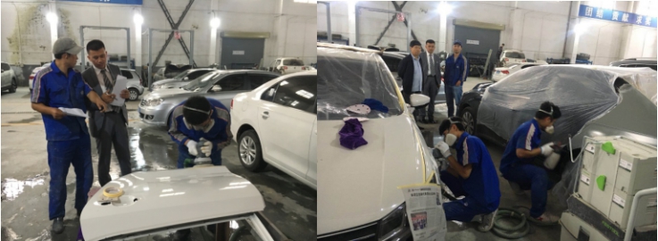 考核中,根據實際情況設置了兩大項、八個小項的考核內容。即:汽車漆工膩子刮涂與打磨。重點從工件清潔、除油、除舊漆、打磨羽狀邊;工件清潔后刮涂膩子;打磨膩子;工具、設備使用是否正確準確,安全操作方面和習慣性錯誤操作;人員著裝、精神面貌、安全防護、整理現場5S作業等八個方面進行了考核。考核小組成員認真評判、打分,現場進行點評指導。